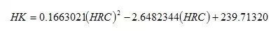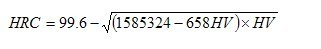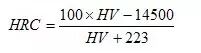 本公式與國家標(biāo)準(zhǔn)實(shí)驗(yàn)換算值對照,換算式計算結(jié)果與標(biāo)準(zhǔn)實(shí)驗(yàn)值之誤差為±0.1HRC。
